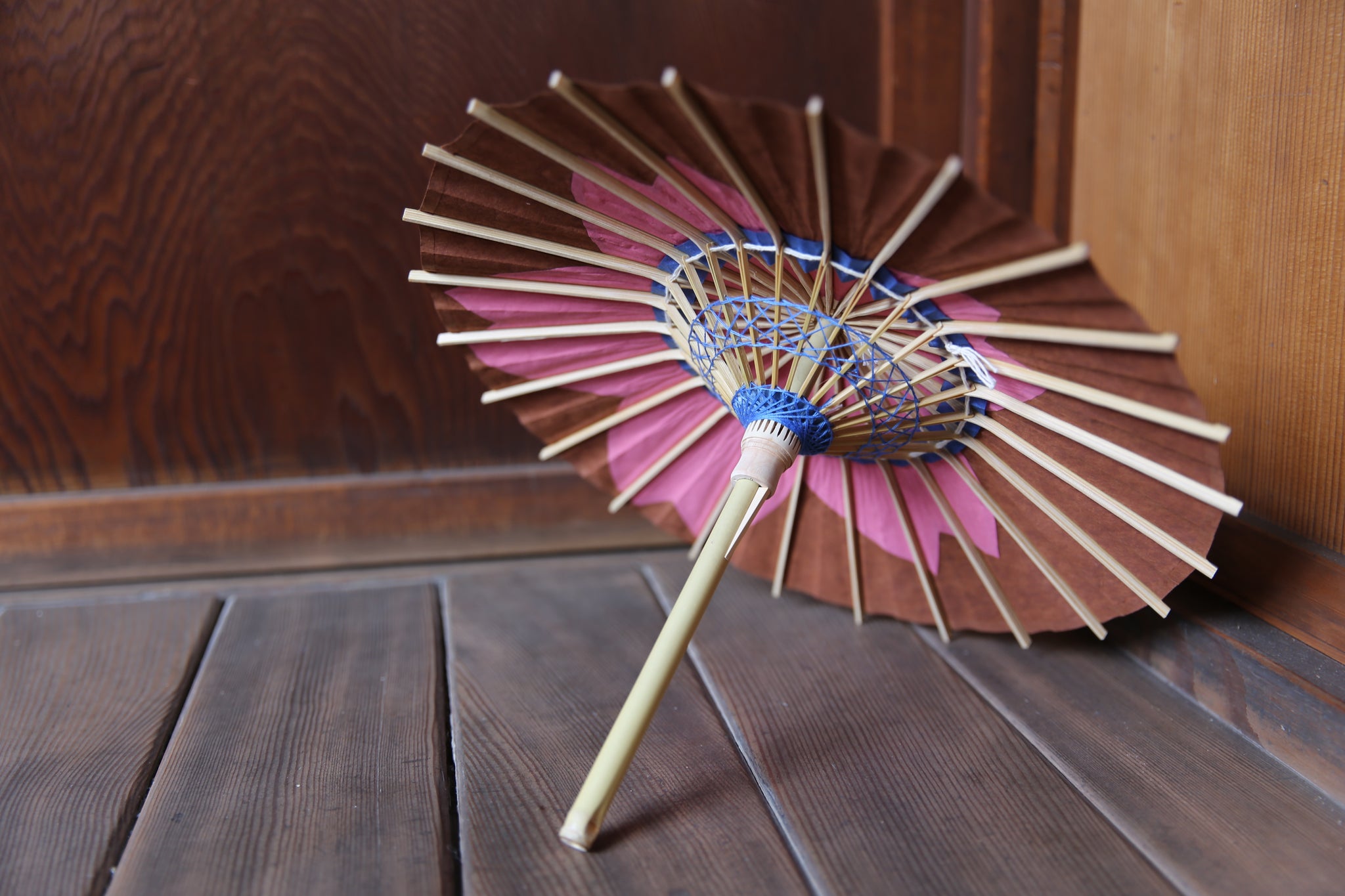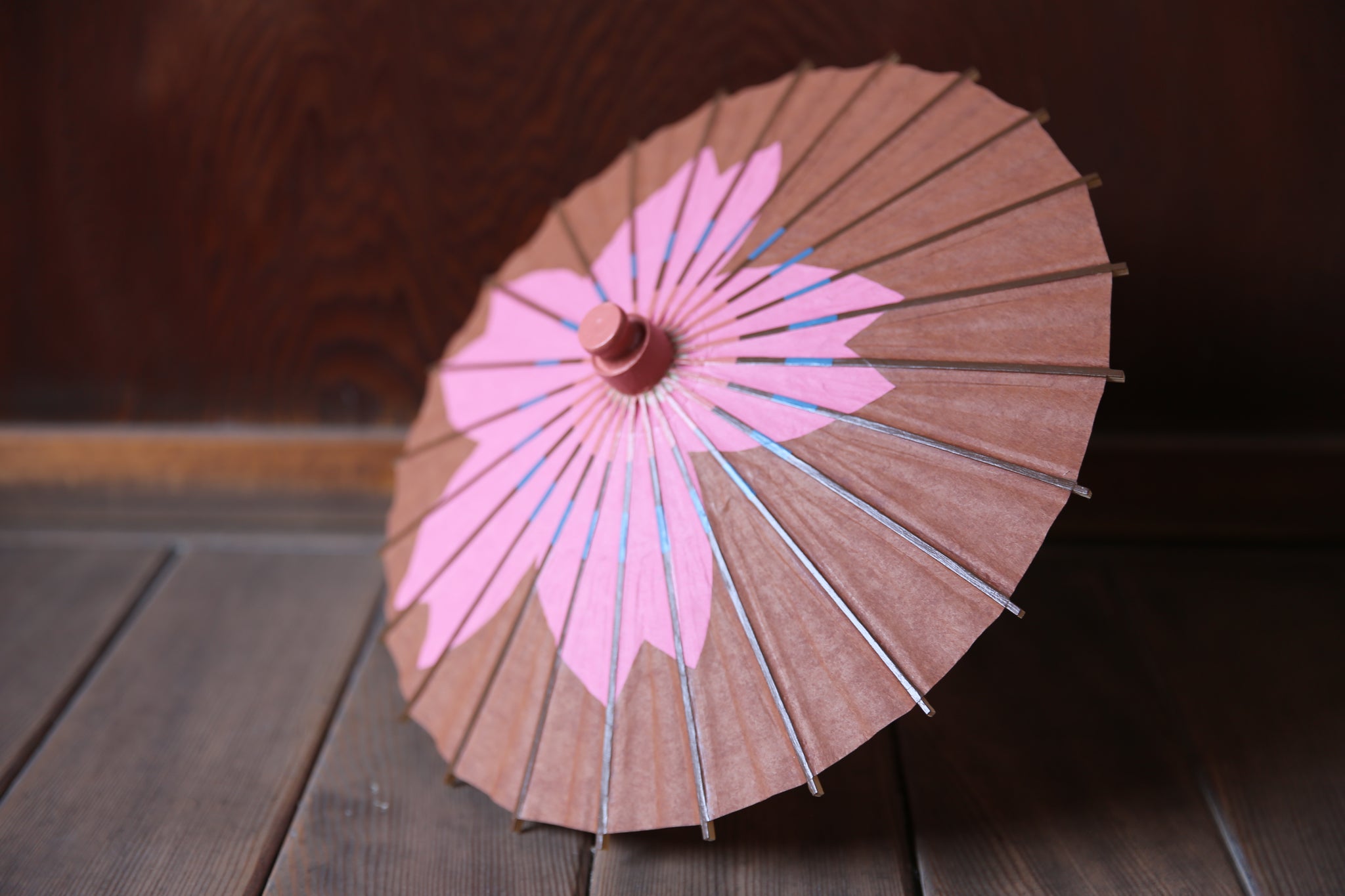 まめ和傘【切継ぎ 桜(茶×ピンク)】 - 和傘CASA