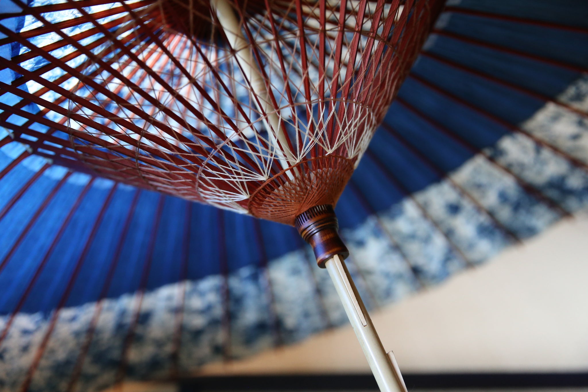 「開いて花、閉じて竹」と謳われる和傘は、職人の熟練の技と、細部に至るこだわりが詰まった日本の伝統的な工芸品です。