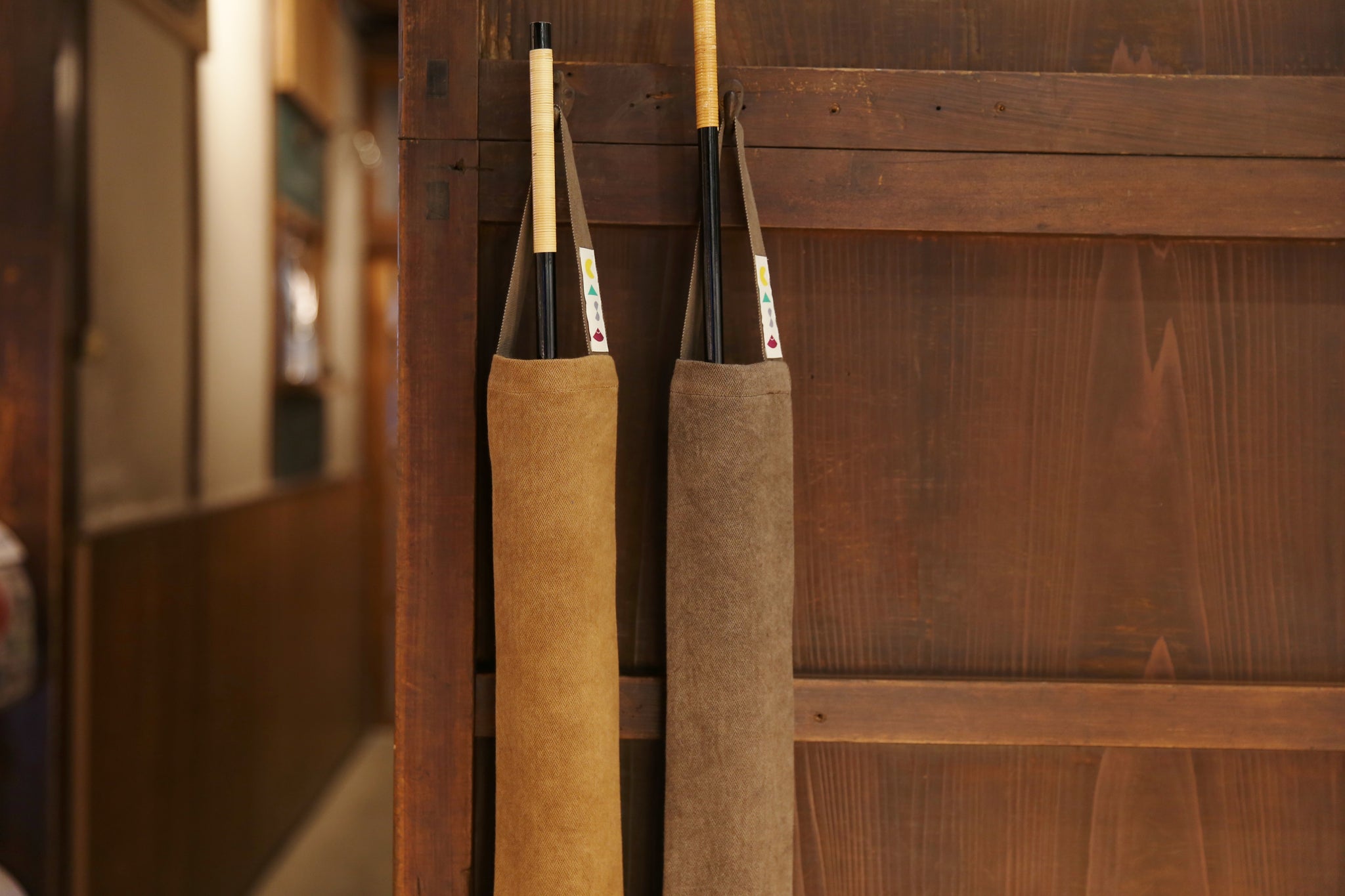 有两种颜色:[棕色],这是柿子汁的原色,和[深棕色],这是铁媒染剂。